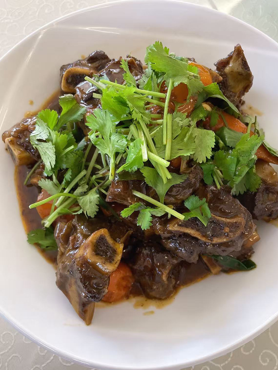 Bowl of vegetable and meat soup at Shun Feng Restaurant,a Chinese Restaurant in Santa Cruz